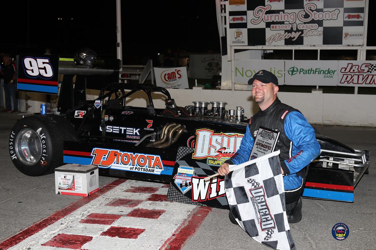 OSWEGO, NY (August 8, 2021) - After a turn three crash damaged the Osetek Racing No. 95 significantly back on July 10, Dave Shullick Jr. of North Ridgeville, Ohio unloaded with a freshly repaired hot rod and had himself a night this past Saturday at the Oswego Speedway.