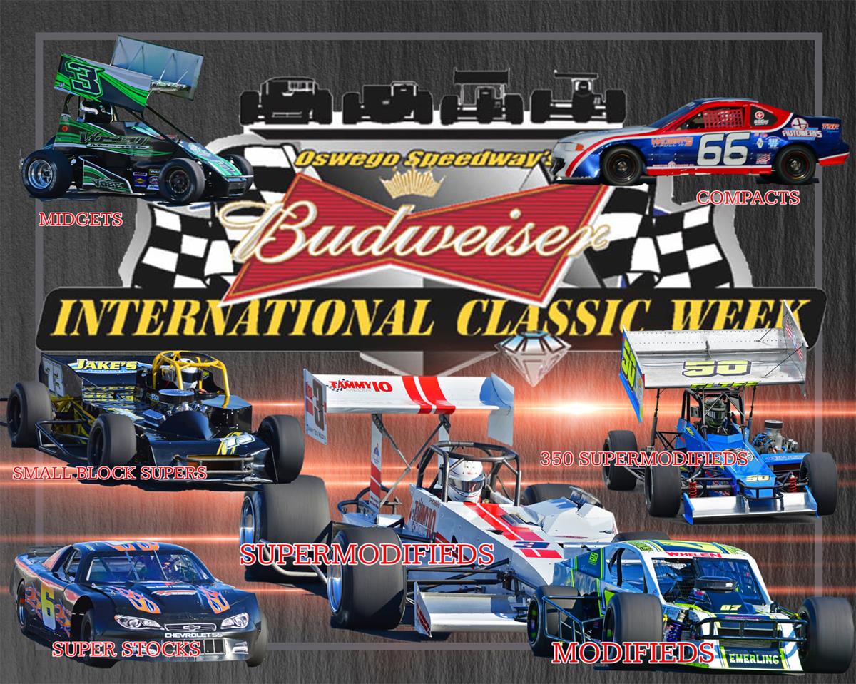 Everything ramps up to Sunday afternoon with the 65th running of the Budweiser International Classic 200 for Supermodifieds, 30th running of the Pathfinder Bank SBS Bud Light Classic 75, and 4th running of the J&S Paving 350 Super Classic 40 taking center stage.