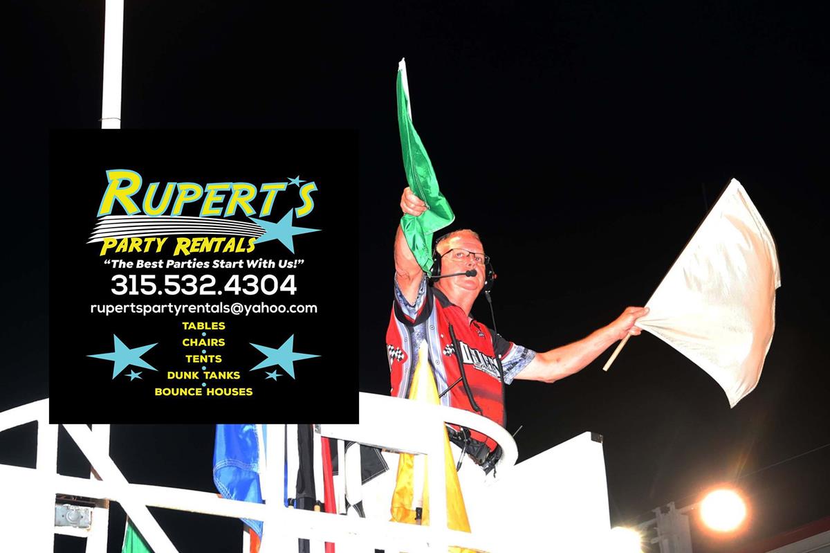 OSWEGO, NY (June 11, 2025) - Oswego Speedway is pleased to announce a new partnership with Rupert’s Party Rentals, which will serve as the official White Flag sponsor at the Speedway for the duration of the 2025 season.
