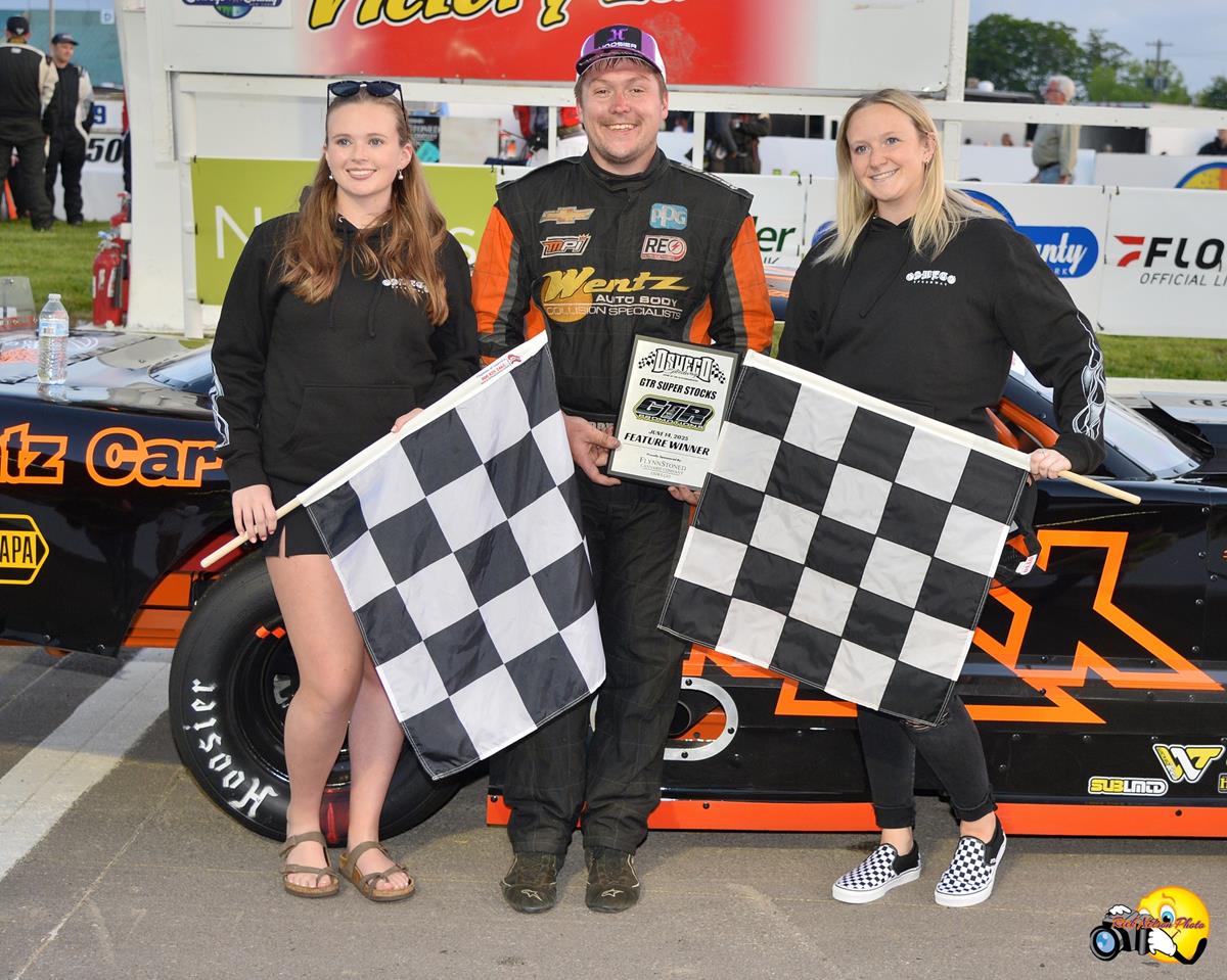 OSWEGO, NY (June 15, 2025) - Johnny Bennett took care of business on Saturday night at the Oswego Speedway as he won round one of the 2025 GTR Promotions Miniseries for the Super Stocks.